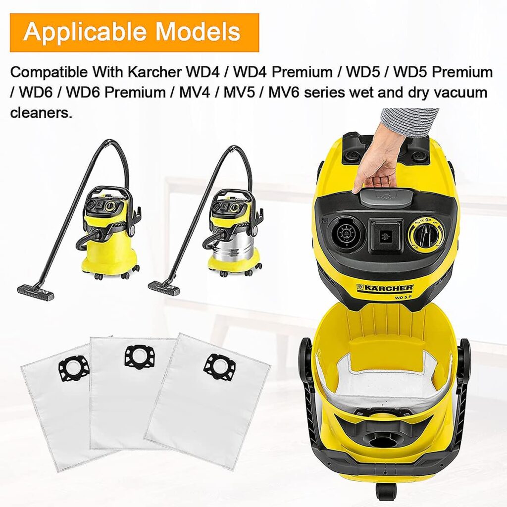توافق واسع مع الطراز: يناسب مجموعة واسعة من موديلات Karcher، بما في ذلك A1000 وA2004 وسلسلة WD5 وسلسلة WD6P والمزيد، مما يوفر حلاً متعدد الاستخدامات لاحتياجاتك في التنظيف بالمكنسة الكهربائية.اللون: أسود
